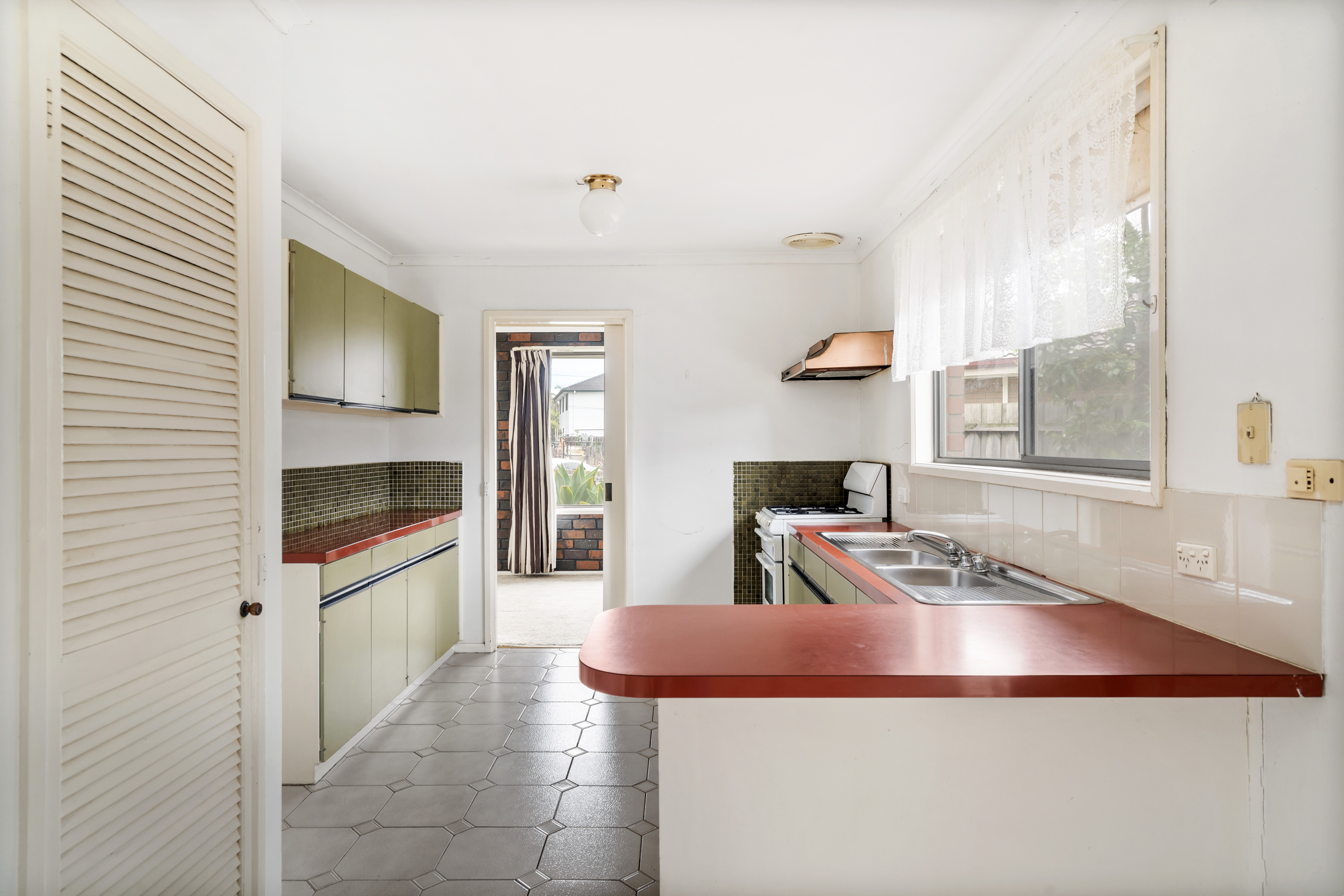 The kitchen and meals area continues the theme of practicality and ease, offering excellent storage, gas cooking and direct visual connection to the rear portion of the property. Designed for functionality, the layout allows for effortless movement throughout the home and supports day-to-day living with comfort and simplicity.