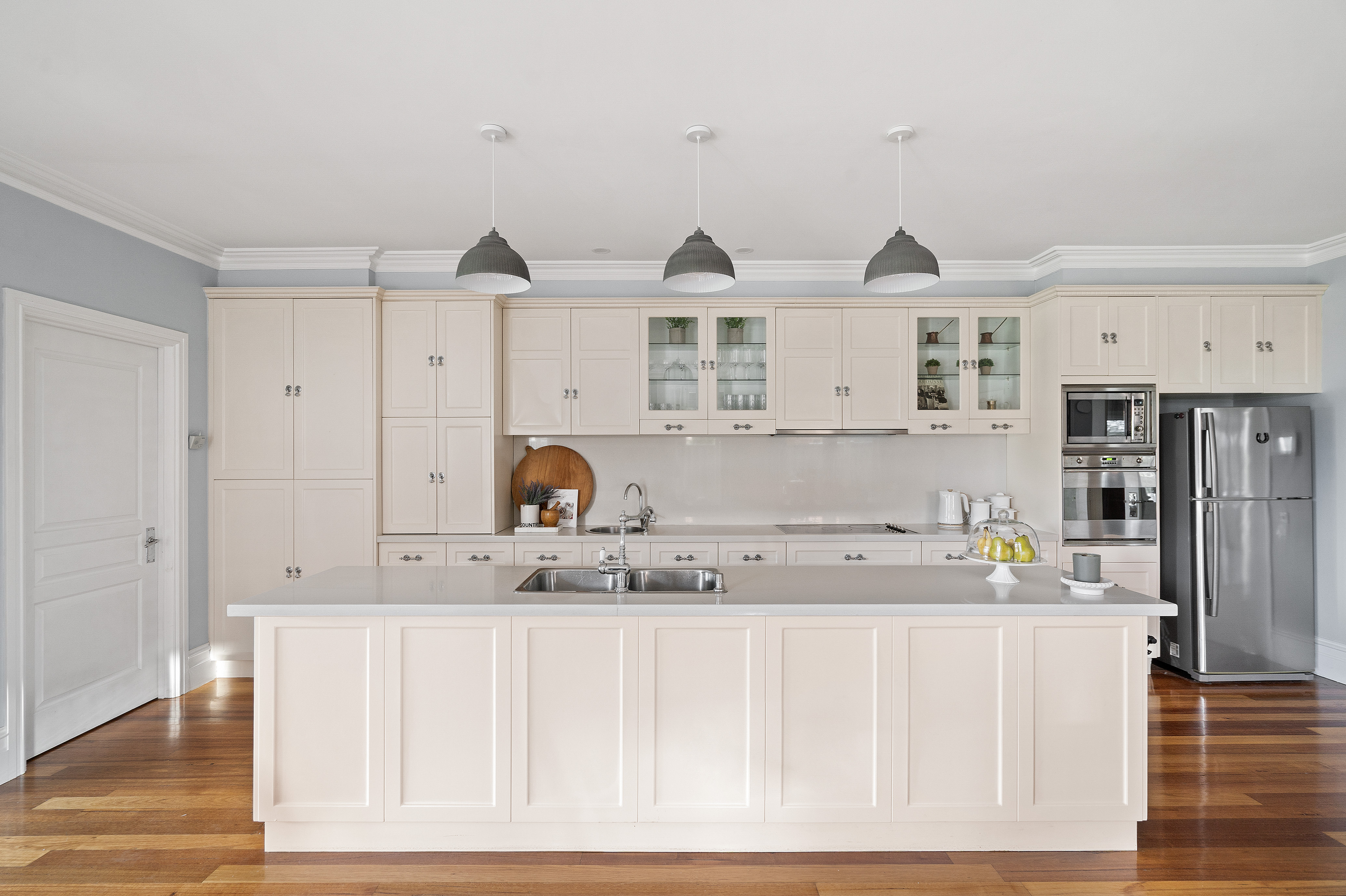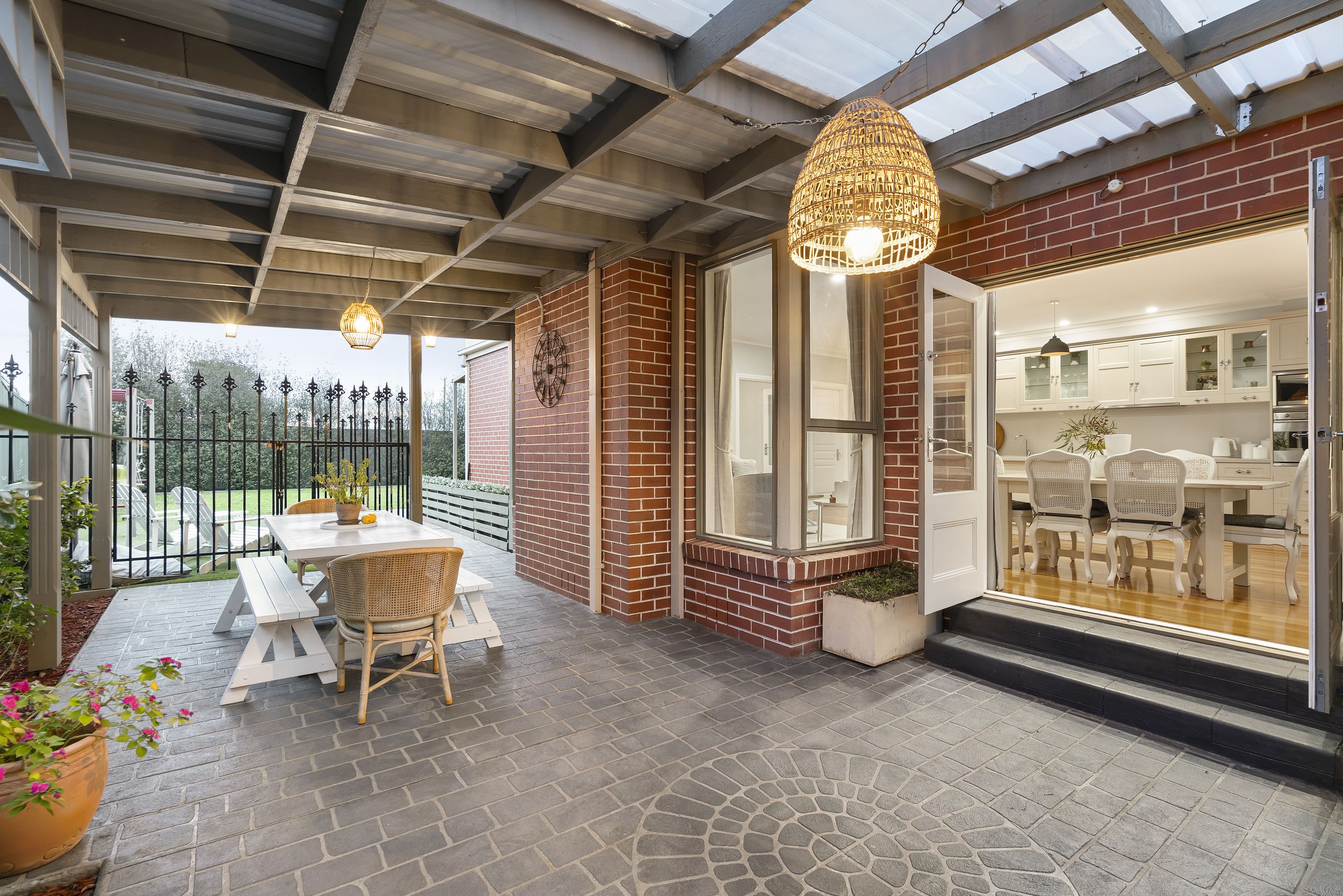 - Classic Kitchen & Indoor–Outdoor Entertaining – Central island kitchen overlooking the backyard with seamless access to a covered pergola.